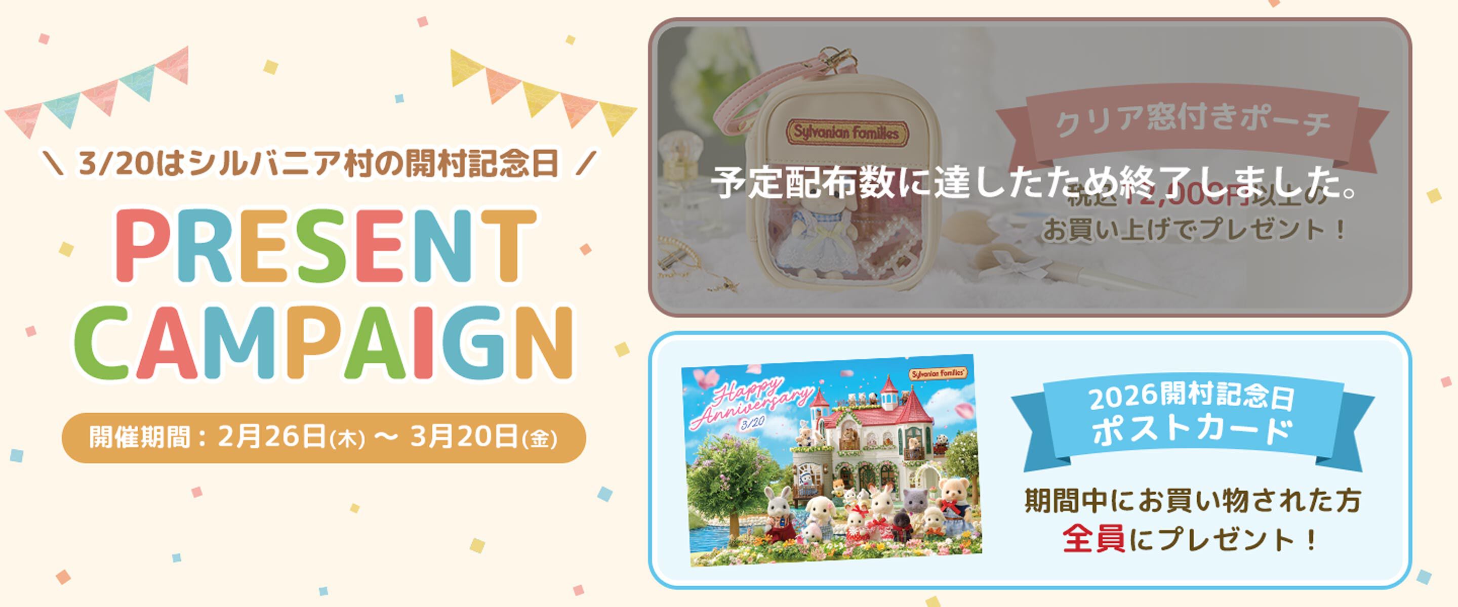 3月20日はシルバニア村の開村記念日★ 『2026開村記念日ポストカード』&『クリア窓付きポーチ』プレゼントキャンペーン開催!
