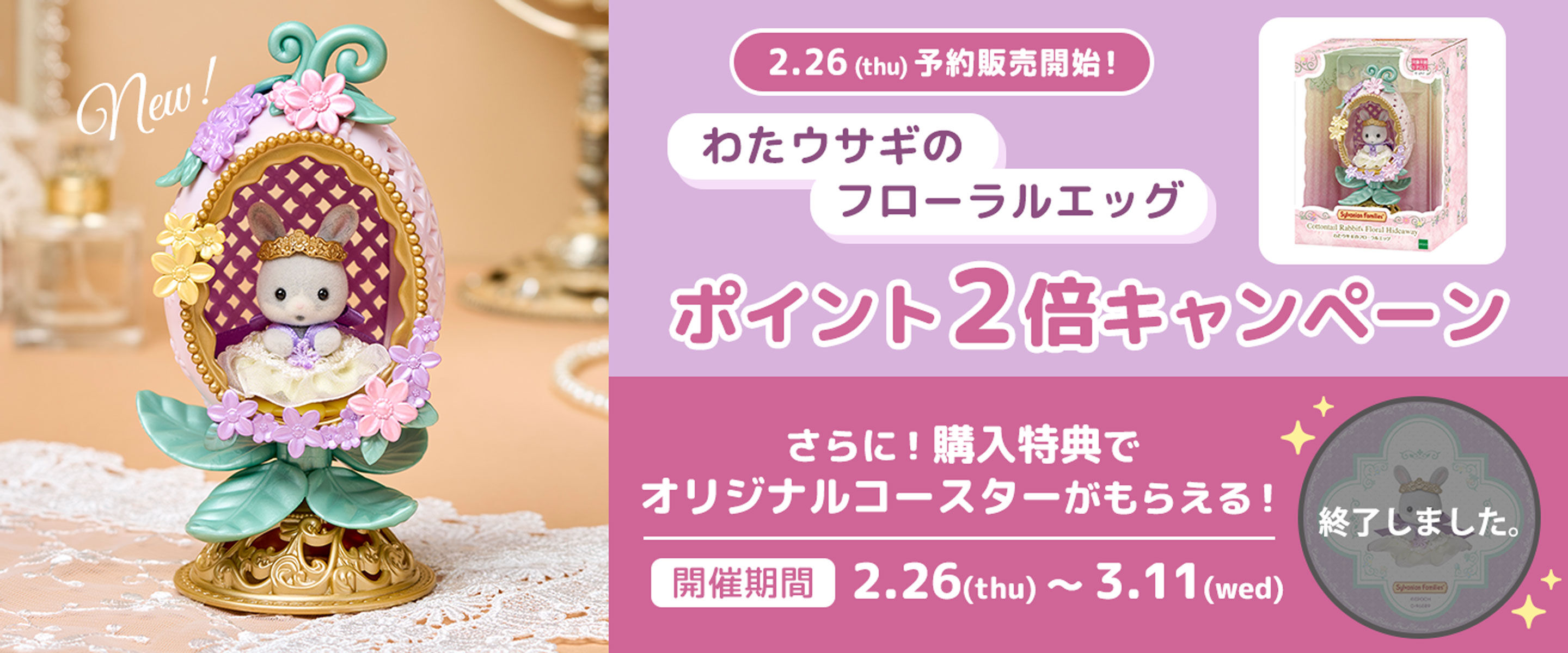 【終了】今ならポイント2倍☆ 2月14日(土)発売の新商品がシルバニアファミリーオンラインショップで予約販売中!