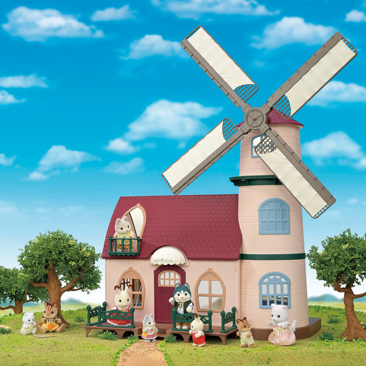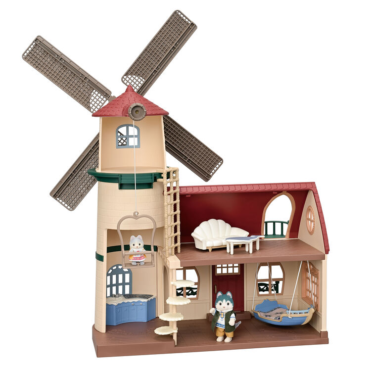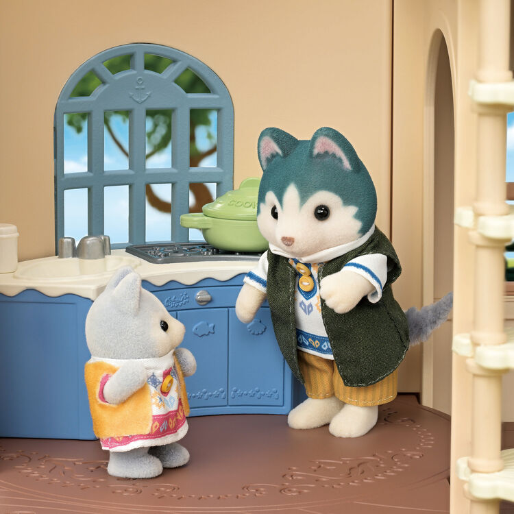 風車小屋と、オリジナル衣装をきたハスキーのお兄さん・ハスキーの赤ちゃん、海をモチーフとしたデザインのオリジナルカラー家具などがセットに♪
